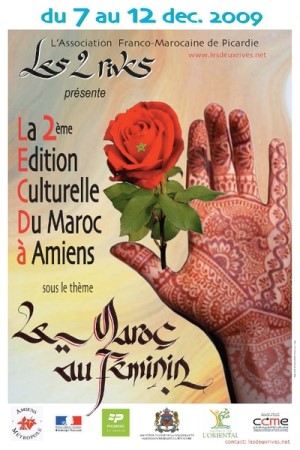 L’Association Franco Marocaine de Picardie « Les Deux Rives » organise la seconde édition de la semaine du Maroc à Amiens du 7 au 12 Décembre 2009, sous le thème « Le Maroc au Féminin ».